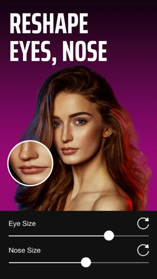 • Instantly slim or increase any area of the photo with a couple of simple swipes.