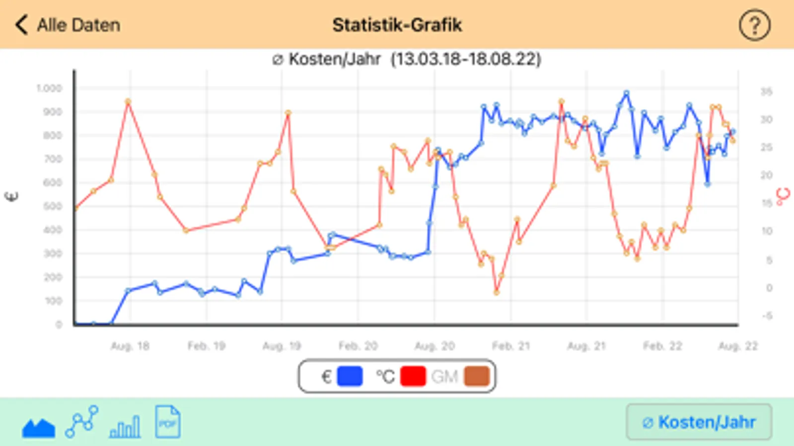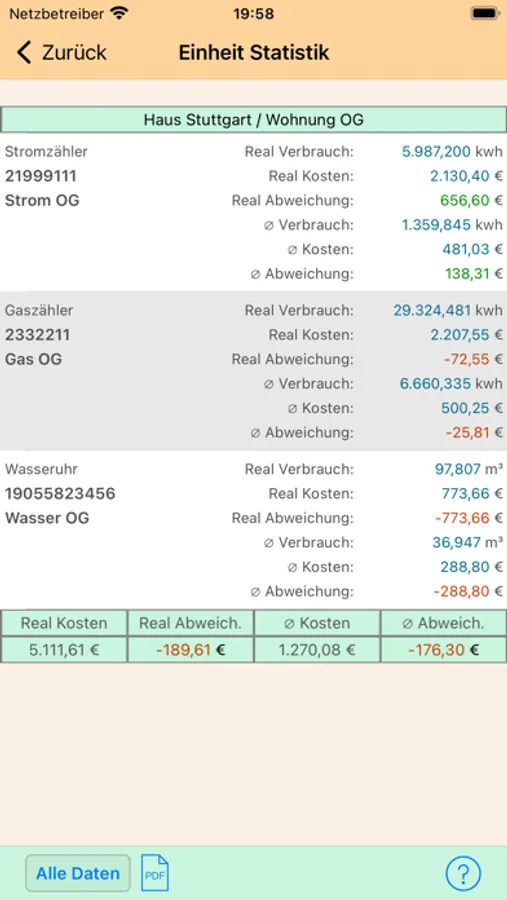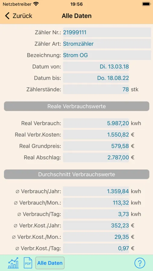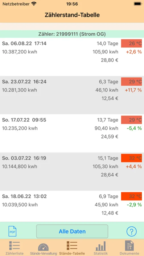 Meine Empfehlung ist 1 x pro Woche die Zählerstände eintragen und man bekommt schnell