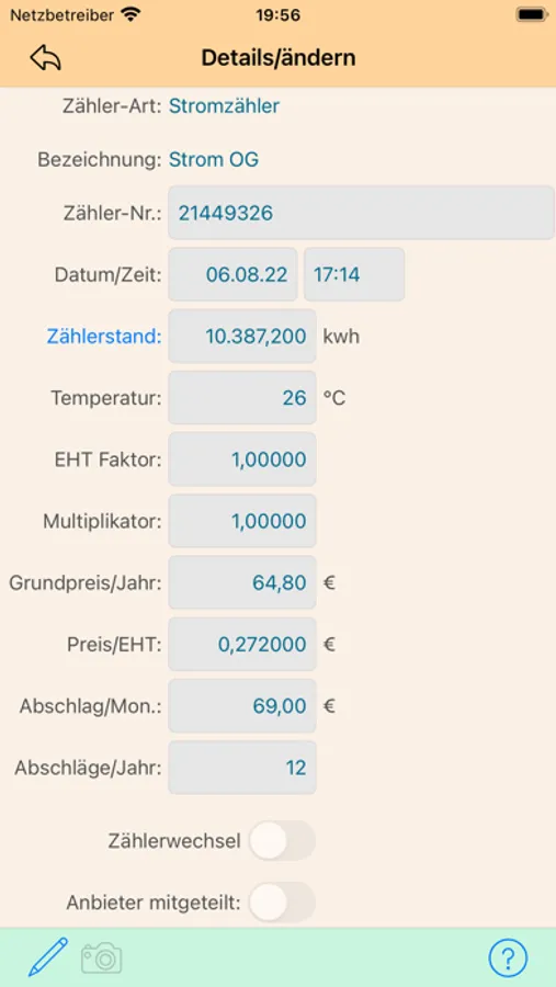 - Zählerstand-Foto erstellen/speichern bei Zählerstandablesung.