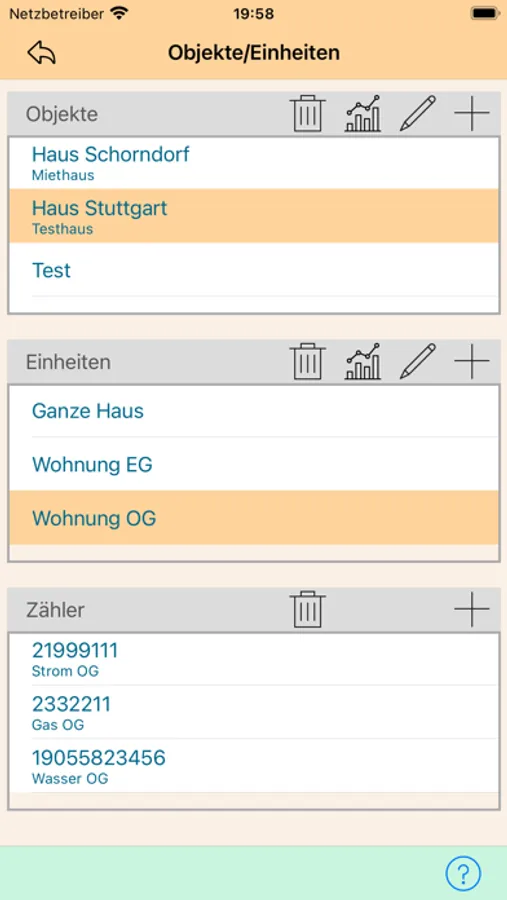 - Zähler mit Zählerfoto und bis zu 4 Dokumenten.