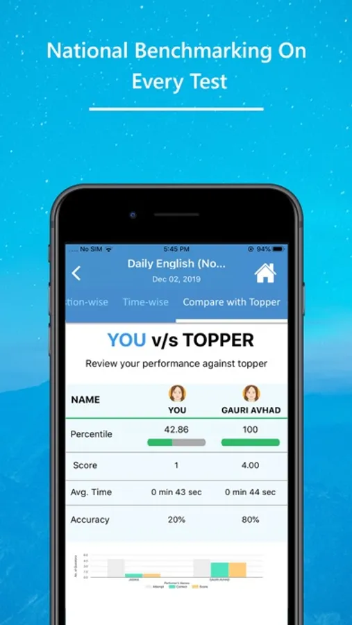 Get in-depth (graphical) analysis of your test attempts. Compare your performance with friends.