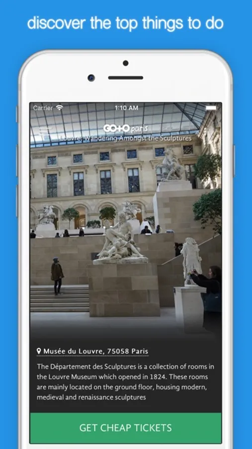 Explore France's romantic City of Paris with the "Go To Paris" travel guide app. Our tourist guide, photos, top things to do and top restaurants are all available offline!