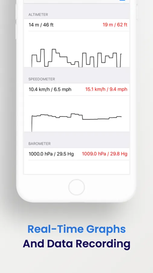 * Recording of all the data that you can later share with other Apps in CSV format. (You need to do an in-app Purchase for this feature).