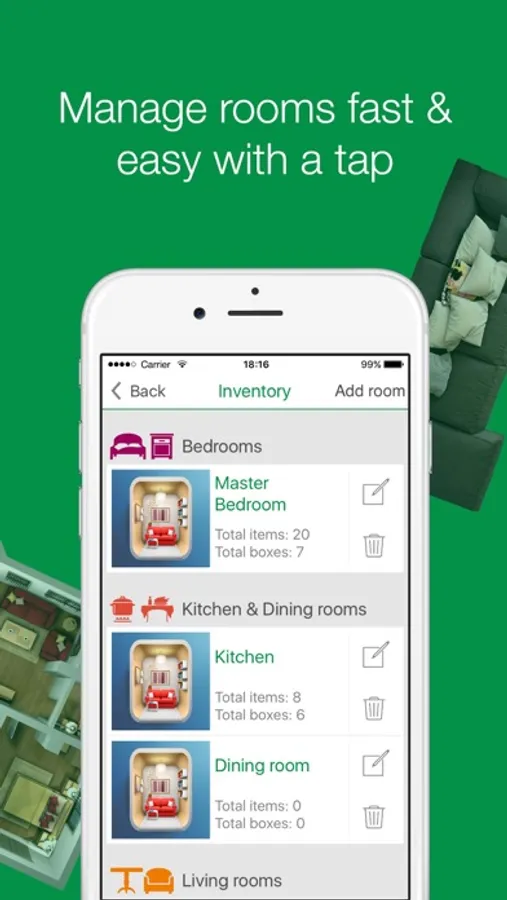 • Complete virtual room-by-room apartment or house moving inventory;