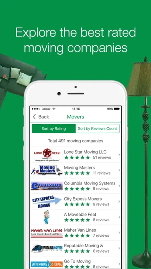 • A comprehensive list of the best rated movers around you;