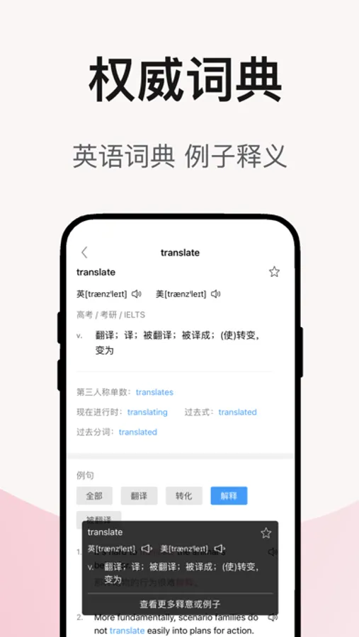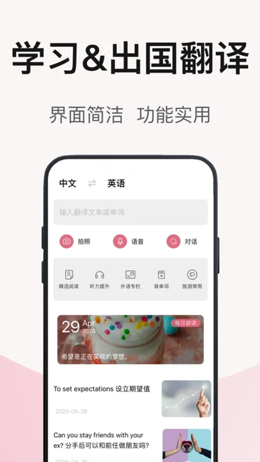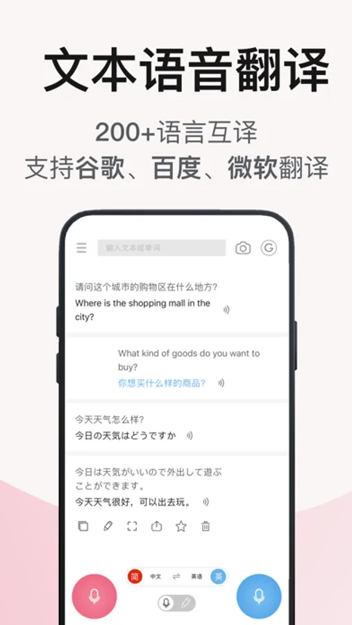 - 告别手写打字输入,通过语音准确的翻译成目标语言。
