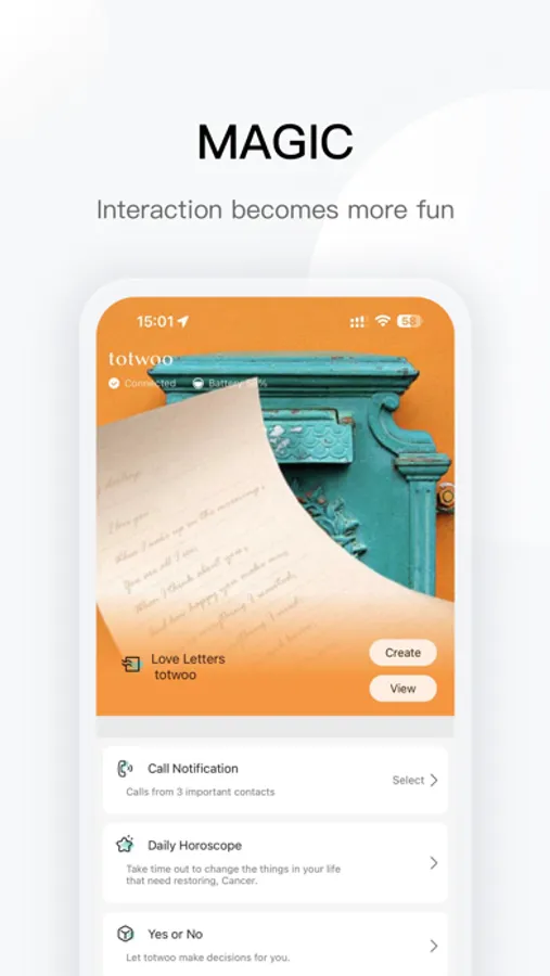 3. Love Letter: Record a love letter into totwoo through the app, your friend will receive the message when connecting totwoo to the app.