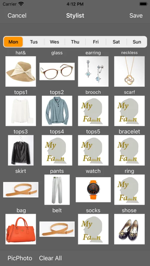 This is to help your fashion coordination weekly with your own closthes and/or clothes to buy.