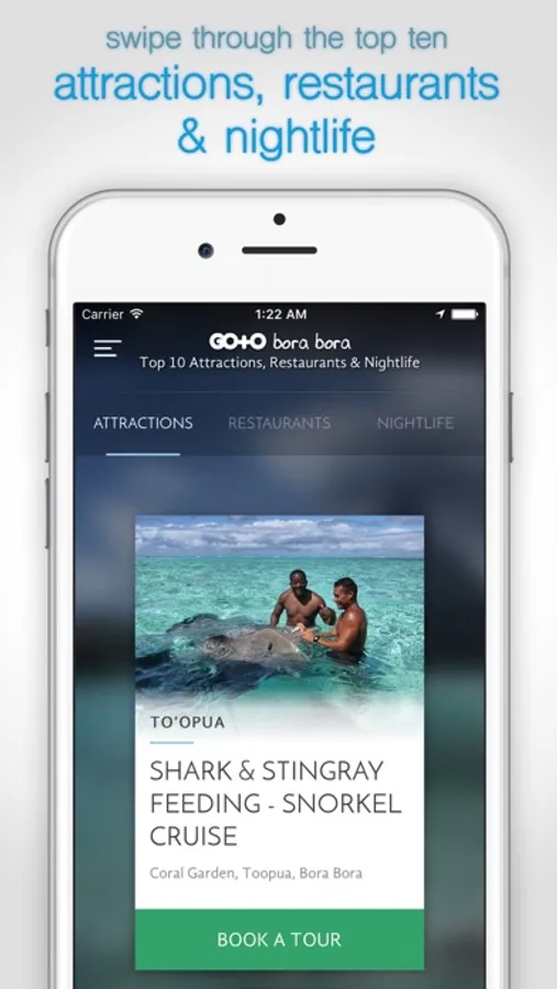 Explore the French Polynesian Island of Bora Bora with the "Go To Bora Bora" travel guide app - our photo guide and top things to do are all available offline! Take a personal tour of one of Tahiti's most popular islands.