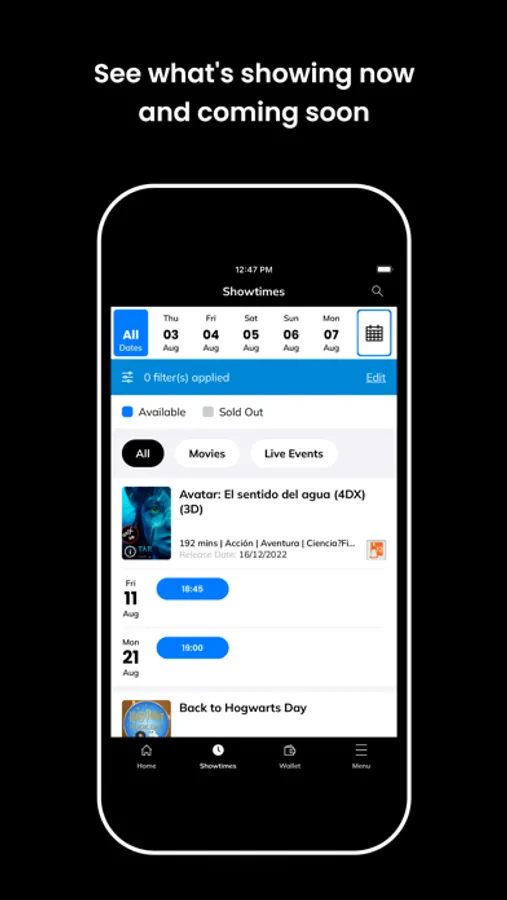 Watch trailers, explore film times, and order your cinema treats in one easy to use app. Still not sure what to see? No problem! Use filters in the app to browse what’s showing now, what’s coming soon, and special performances, to help you decide.