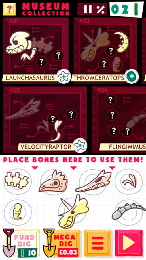 Build weird dinosaurs & launch them - will they land on target or be eaten by a giant lava dinosaur? Collect coins to fund digs in your search to complete your museum collection!