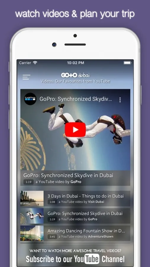 Explore the lively Emirate City of Dubai with the "Go To Dubai" travel guide app. Our tourist guide, photos, top things to do and top restaurants are all available offline!