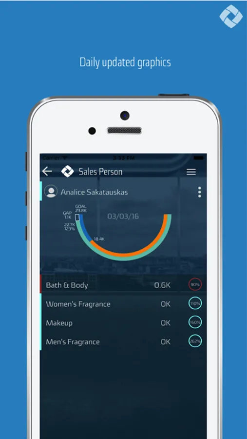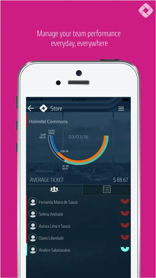 The app provides interactive graphics on the performance of individuals, teams, the performance of stores and sales of various product categories, comparing actual results with the targets previously outlined, highlighting just how much there is still to sell.