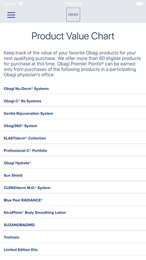 Obagi Premier Points℠ is an exclusive opportunity to earn points every time you purchase participating Obagi® products from your physician. Join today, and every dollar you spend goes toward free products in the future. Once you’ve saved enough points, you can redeem them for free Obagi products.