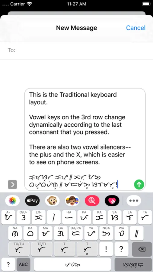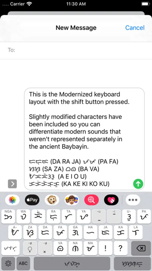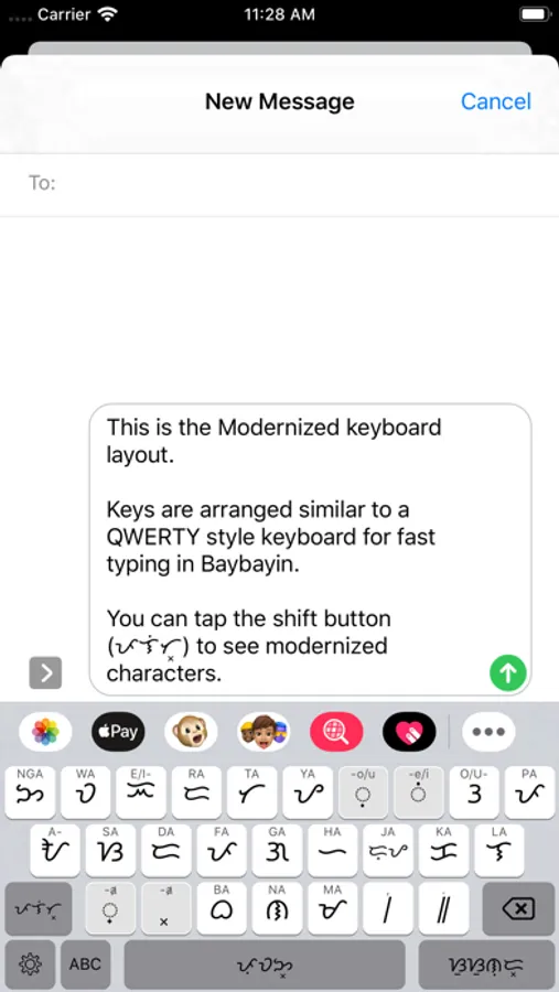 Baybayin is the indigenous script of the Philippines that has made a resurgence as a way to express Filipino cultural identity. The Baybayin Keyboard lets you type baybayin characters on your iPhone or iPad. It functions seamlessly as an alternate system keyboard that can be used within apps such as Messages, Facebook, Instagram, and Twitter.