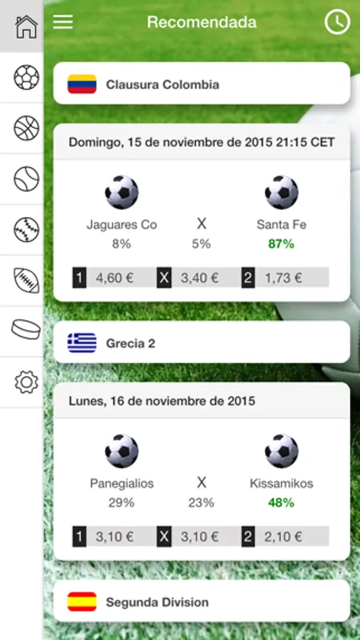 With the new method Recommended predictions we suggest the 15 games with higher percentages so that your predictions is the most effective and power to earn more money with your predictions