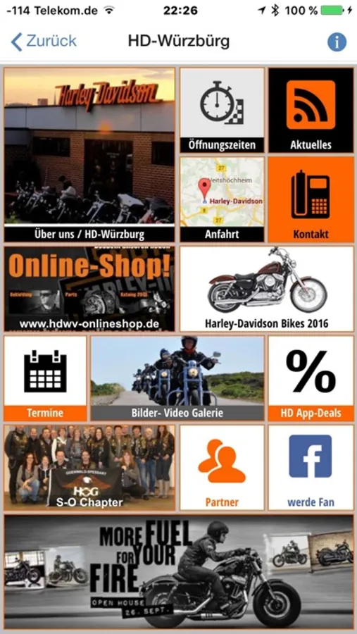 Die Harley Davidson Würzburg App vom HDWV informiert Euch rund um unsere Angebote und Aktivitäten unseres Harley Davidson Stores.