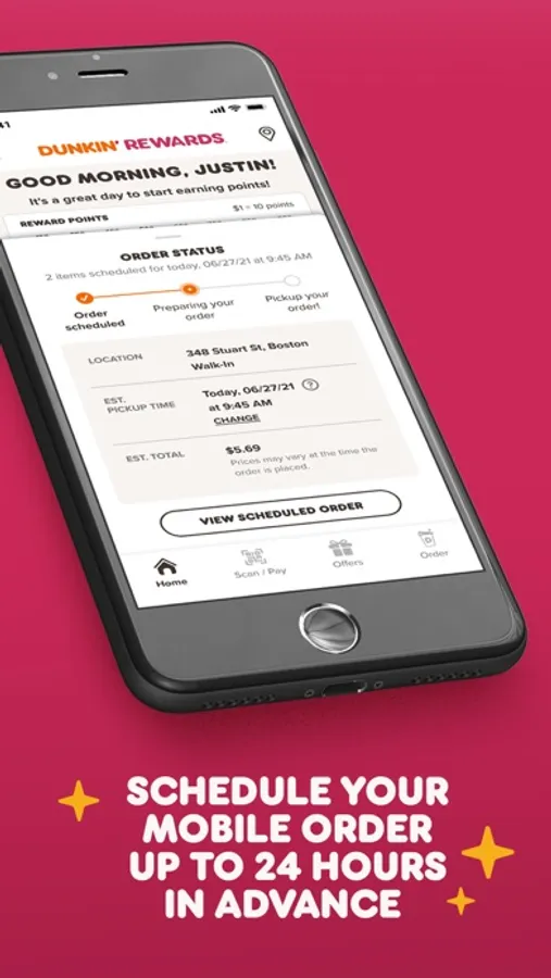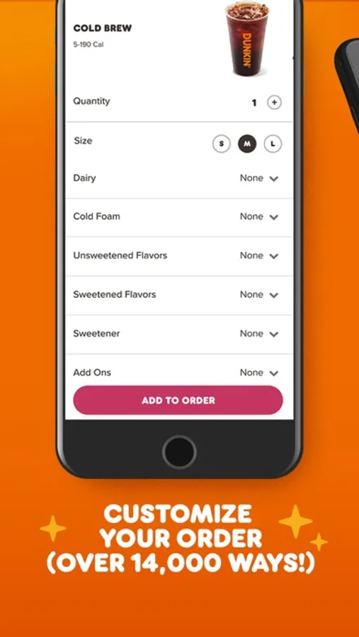 Make it your own! There’s over 14,000 ways to customize your order when you order ahead on the app. Plus, Dunkin’ Rewards members can save their favorite orders and Dunkin’ locations, and schedule their mobile orders up to 24 hours in advance.