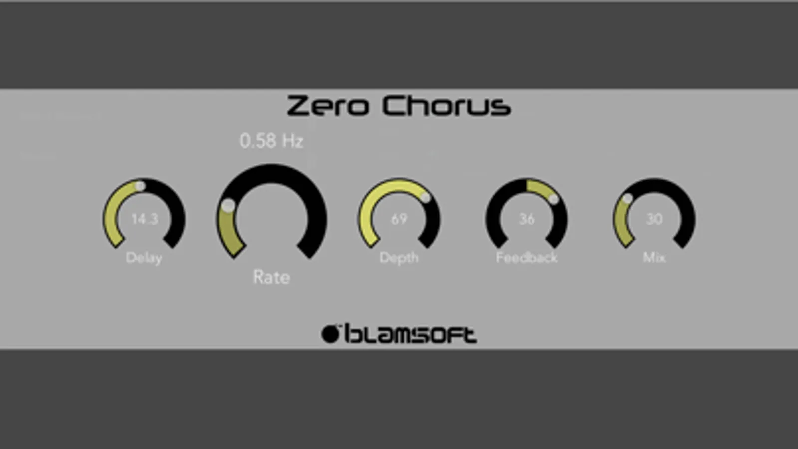Looking for a rich chorus effect without a muddy low end? Zero Chorus is a high quality Roland Dimension D style chorus plug-in. The addition of a feedback control improves versatility by enabling flanging effects.