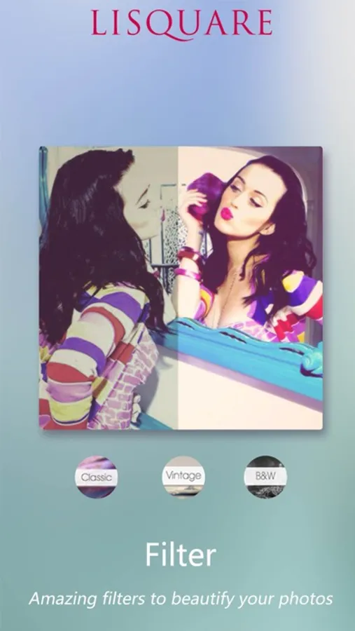 LiSquare is powerful photo editor with masks(leak,lens,shadow), filters,stickers, snap text and so on.