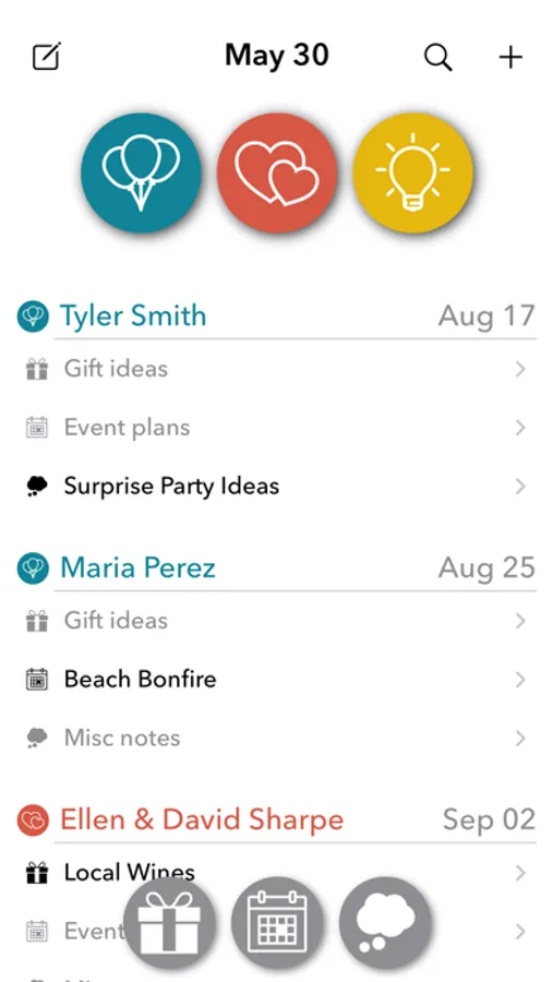 - Add gift ideas, event plans and custom notes for events