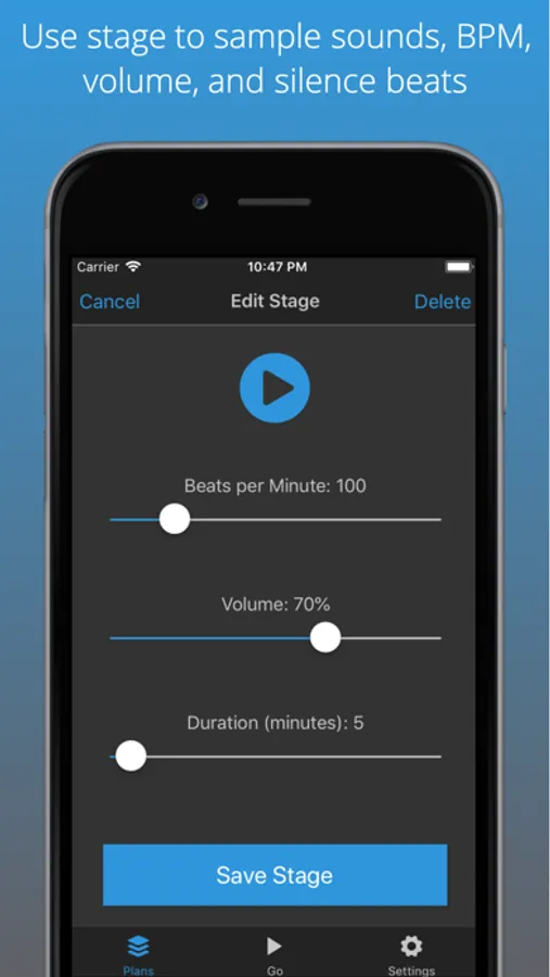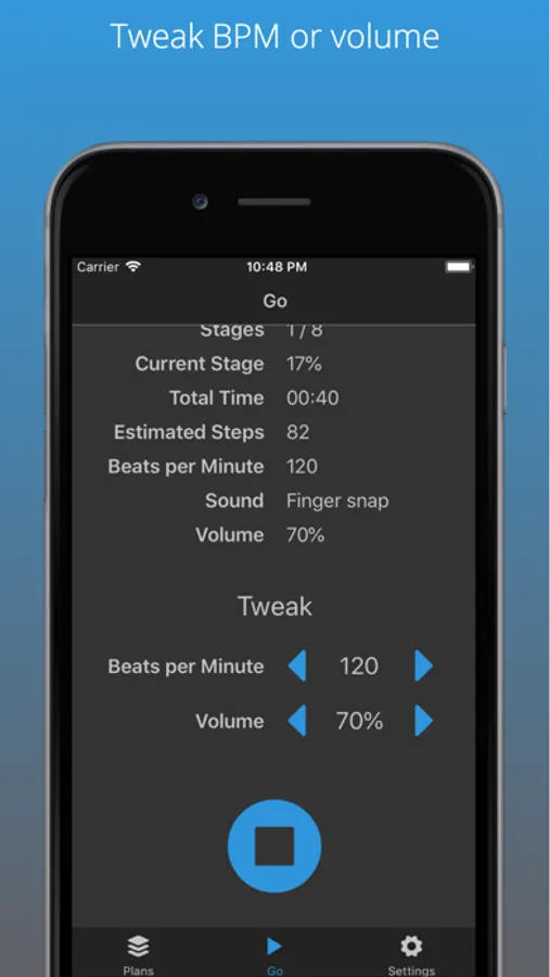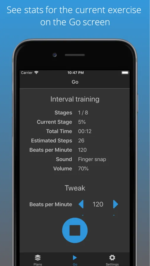 Pace Keeper is an app focused on helping you stick to a goal exercise pace or cadence. The app plays a short sound at a particular frequency (beats per minute) to guide your movements. If walking or jogging, that means how often your feet should touch the ground.
