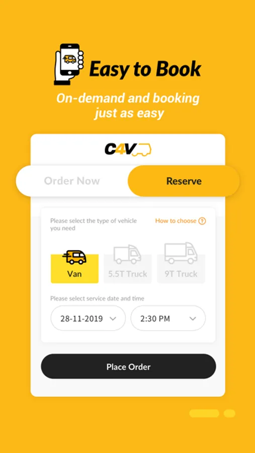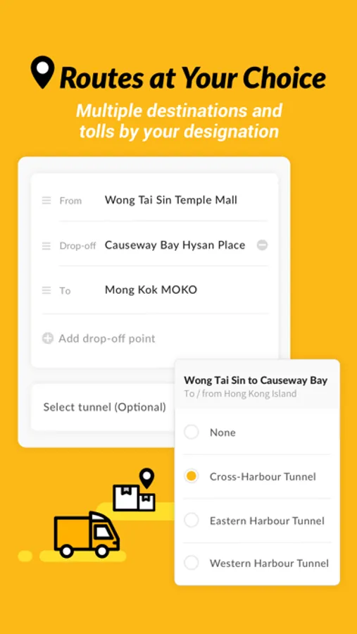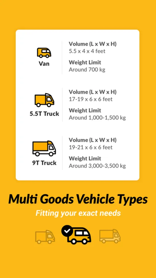 The all new user interfaces are easier to use than ever, with both bug fixing and improvements at the same time. It is now more convenient to manage order and track status. Light goods vehicles, 5.5t lorries and 9t lorries are all at your service with just a few taps.