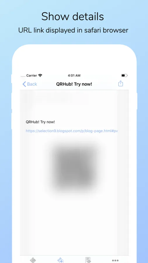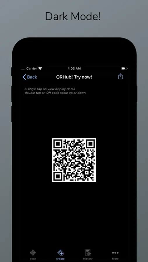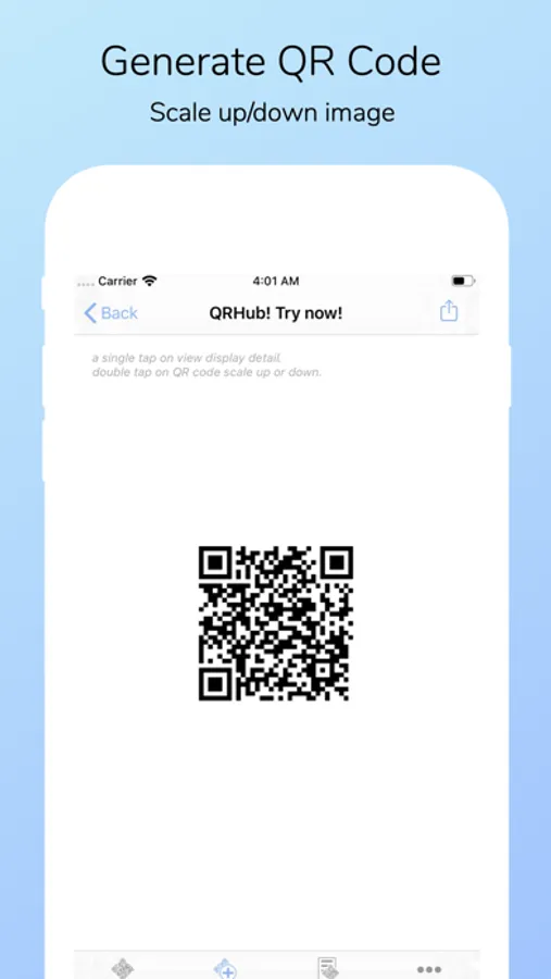 QRHub is an application designed to read and create QRCode. It is very easy to use. Also QRHub have historical management. You can re-create QRCode that was scanned or created before.