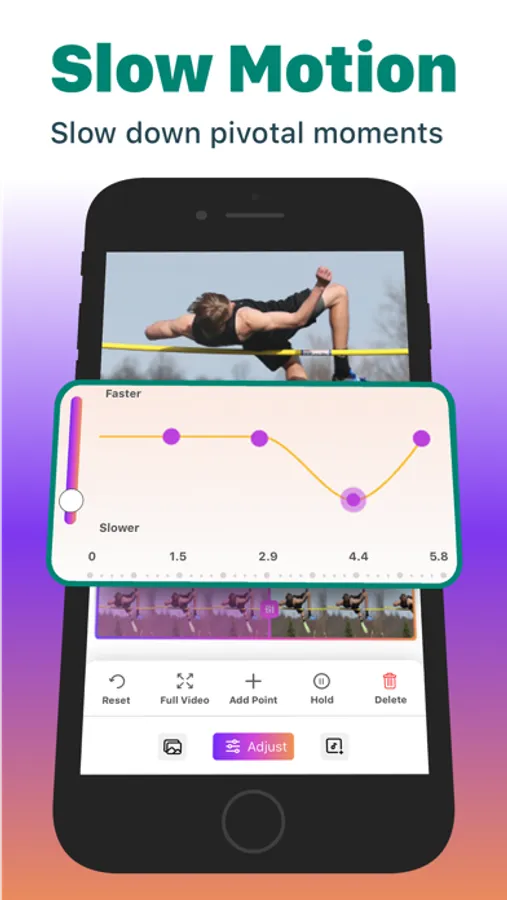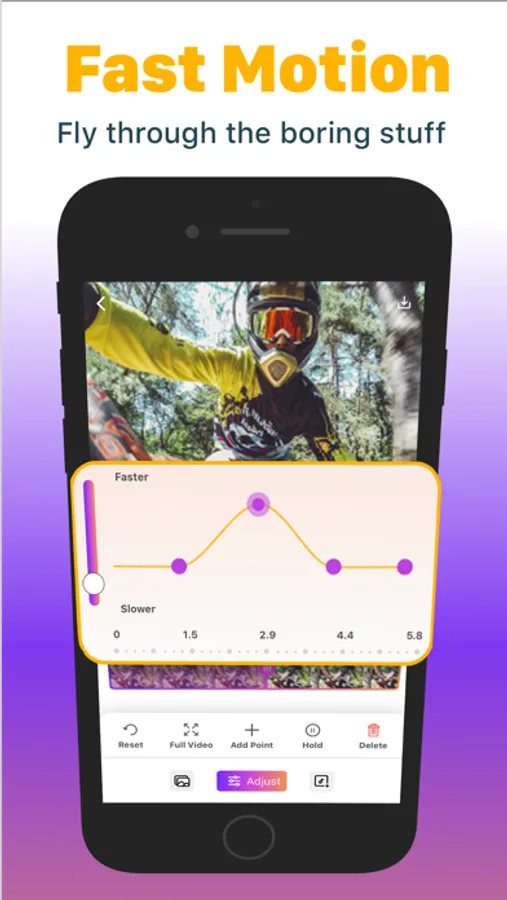 - Edit video speed up to 240fps or 12x faster or Slower.