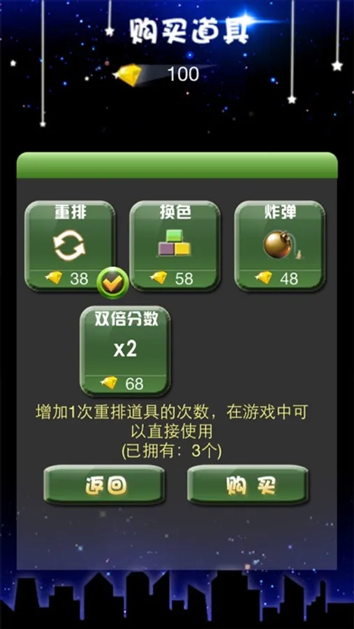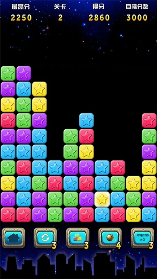 ● 同时消除的同色星星越多,获得的分数越高.