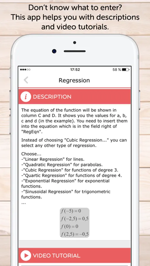 • You can swipe through screenshots of the original graphing calculator which show every step you have to do (220 screenshots in total)!