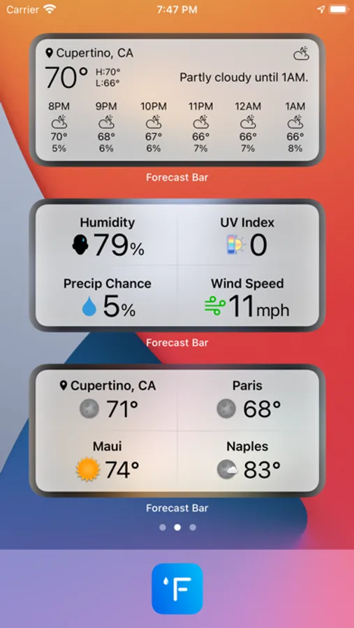 Forecast Bar offers hyper accurate, hyper local live weather and forecasts right at your fingertips, and is customizable to fit your needs. With 12+ Home Screen and Lock Screen Widgets, including a multi-city widget to see weather in up to 4 locations at once.