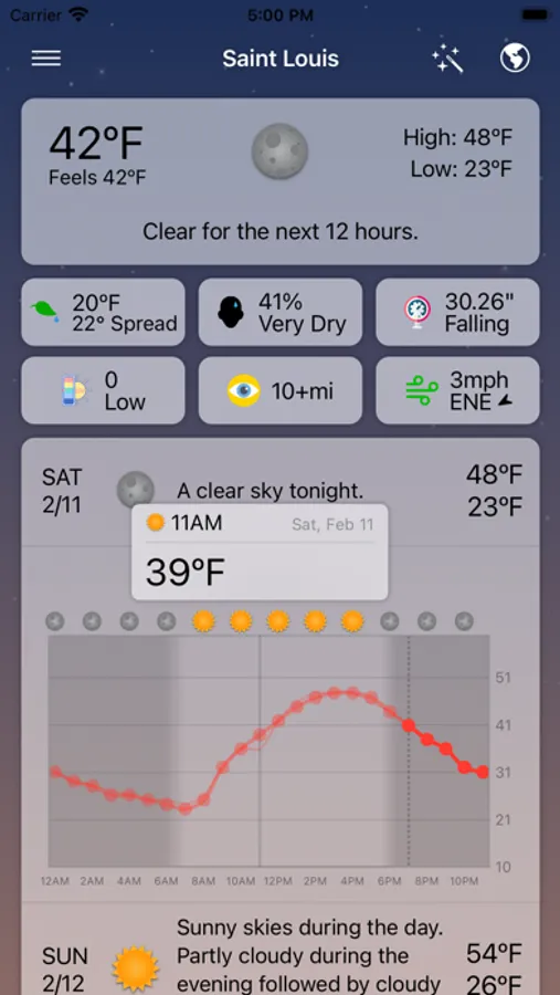 - Tap again to see rich, interactive charts of even more details like dew point, pressure, visibility, UV index and more