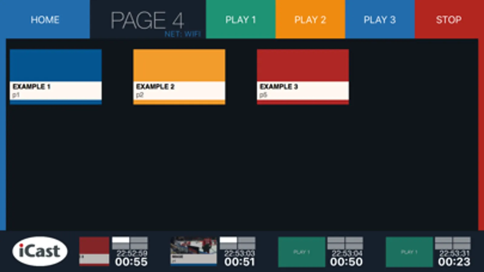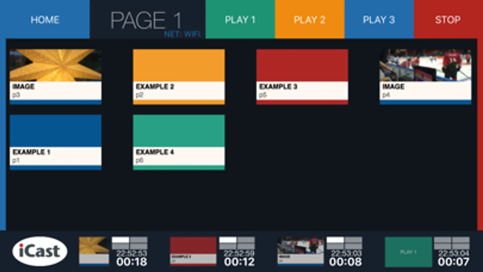 Application to trigger scenes in iCast Sportsystem. Build your own trigger buttons to start playlists and arrangements. Four predefined buttons can be used for free. If more buttons are to be added, the iCastShotBox Admin computer software is required. The four free buttons are also available as an Apple Watch Extension if you run iCastShotBox2 on an iPhone.