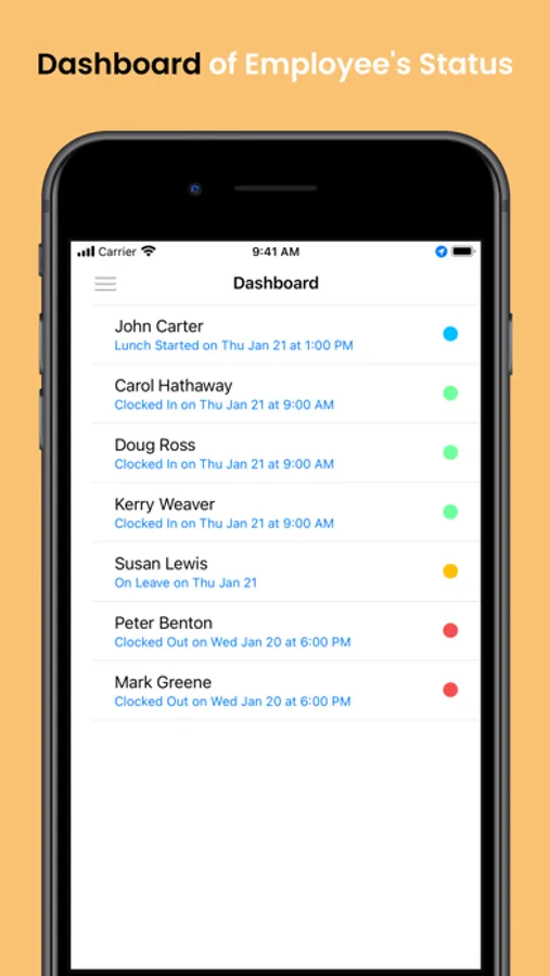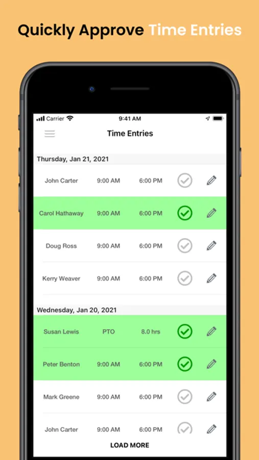 • Managers can approve time entries for payroll reporting, created from the web dashboard