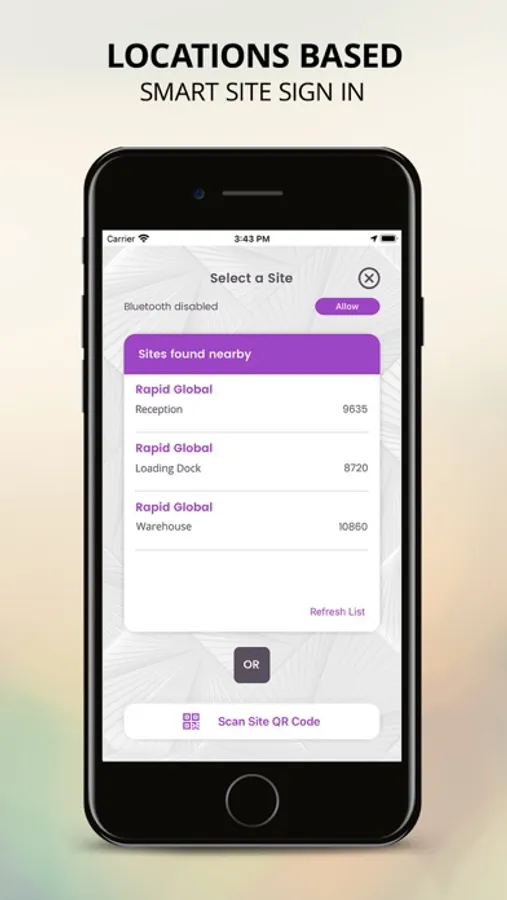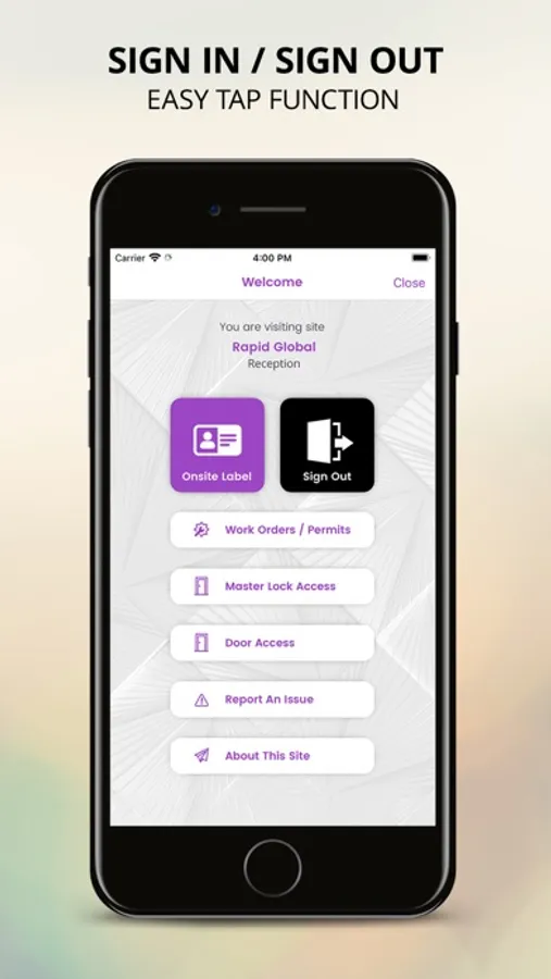- Sign In or Sign Out of a site by using your device to scan a unique QR code located onsite