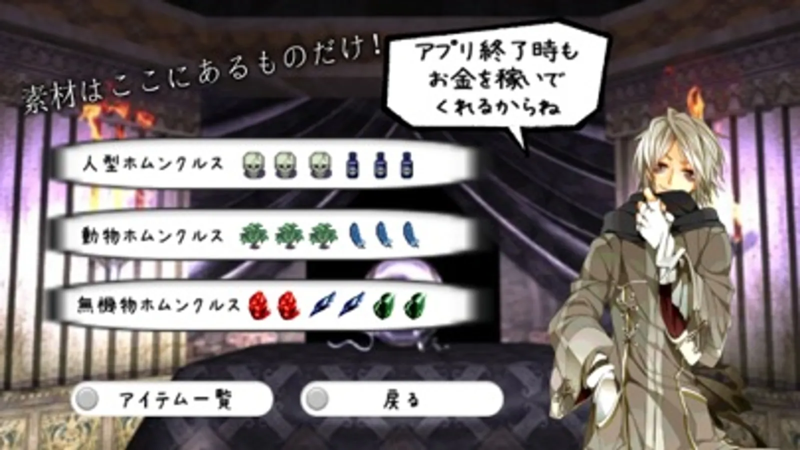 ホムンクルスは自動的にお金を稼いできてくれるから、プレイヤーは放置して眺めるだけでもOK!!!