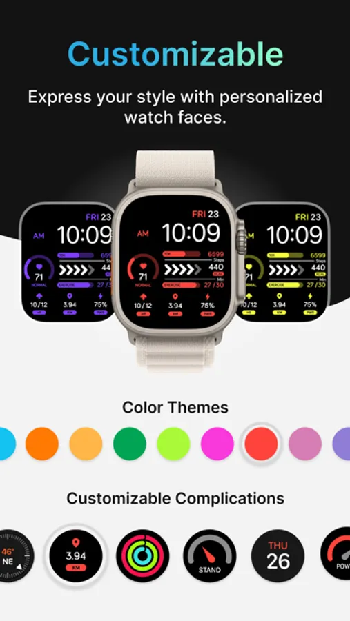 -Connect to HealthKit to display Steps and Heart Rate data in compatible designs.