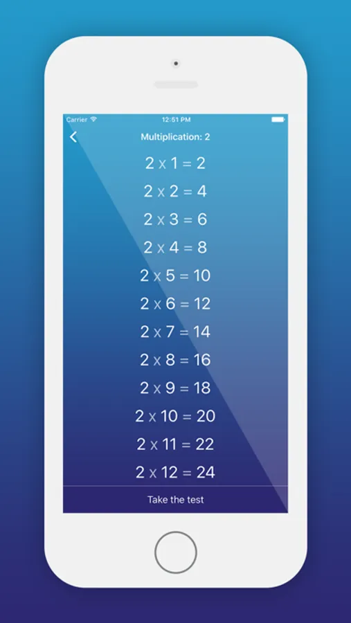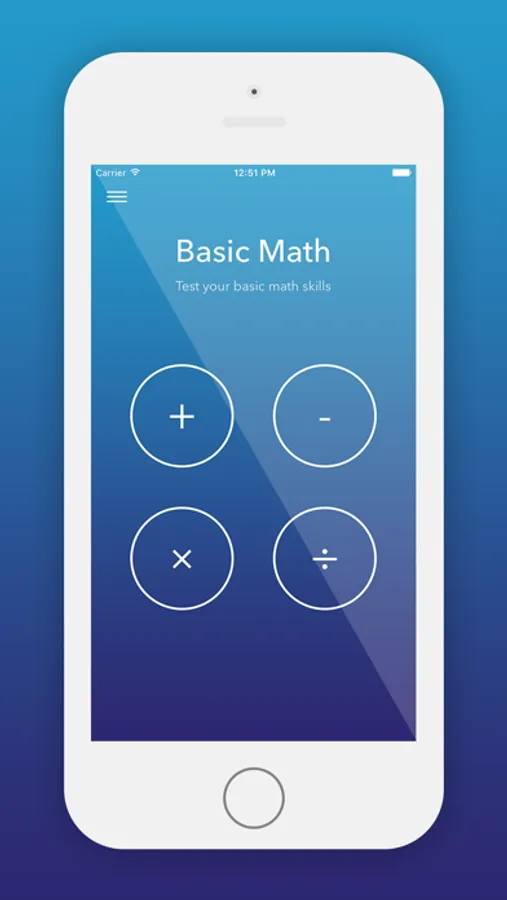 We've created a easy to use math app which allows you to challenge your knowledge by taking random tests based on basic mathematical equations. We have included Addition, Subtraction, Division and Multiplication tables from 1 to 12 which will allow you to hone your skills.