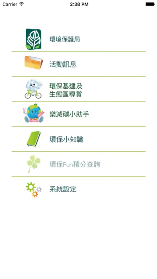 透過使用流動應用程式,除了可查詢環境保護局的最新資訊外,亦提供了本澳環保基建設施的位置資料及資訊。參加路氹城生態保護區導賞時,可透過掃描場地提供之QR Code查看區內動植物詳細資料。問答遊戲及環保小知識帶出日常生活中各種各樣環保智識、配合樂減碳小助手更可追踪每天為環保作出的貢獻。而環保FUN會員更可使用應用程式查詢積分等等。