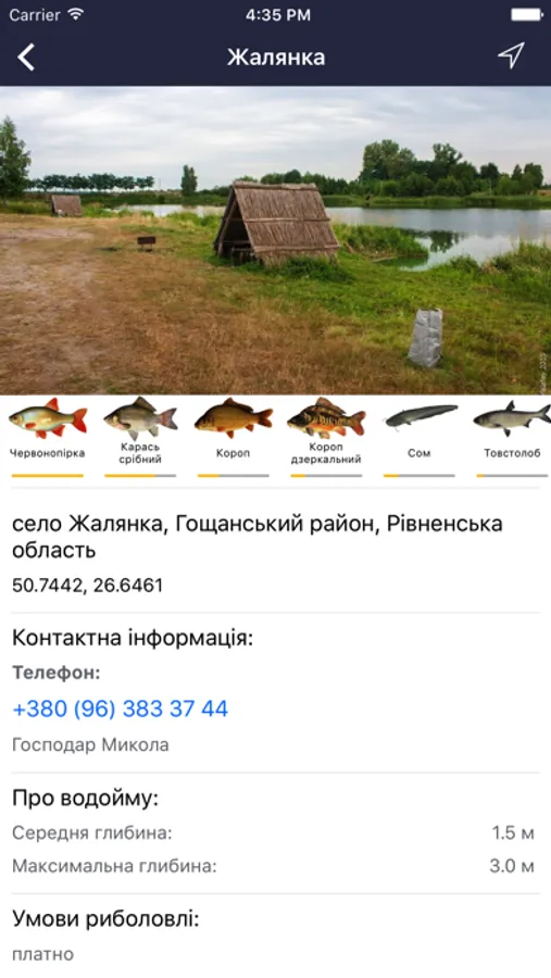Віднині вам не потрібно ломати собі голову над тим, де ж знайти омріяну рибу. Ми вже подбали за все про вас. Лише за допомогою нашої програми вам буде доступна база даних рибних місць рідного краю з детальними описом, умовами відпочинку, сотнями фотографій і тисячами коментарів від інших рибалок.
