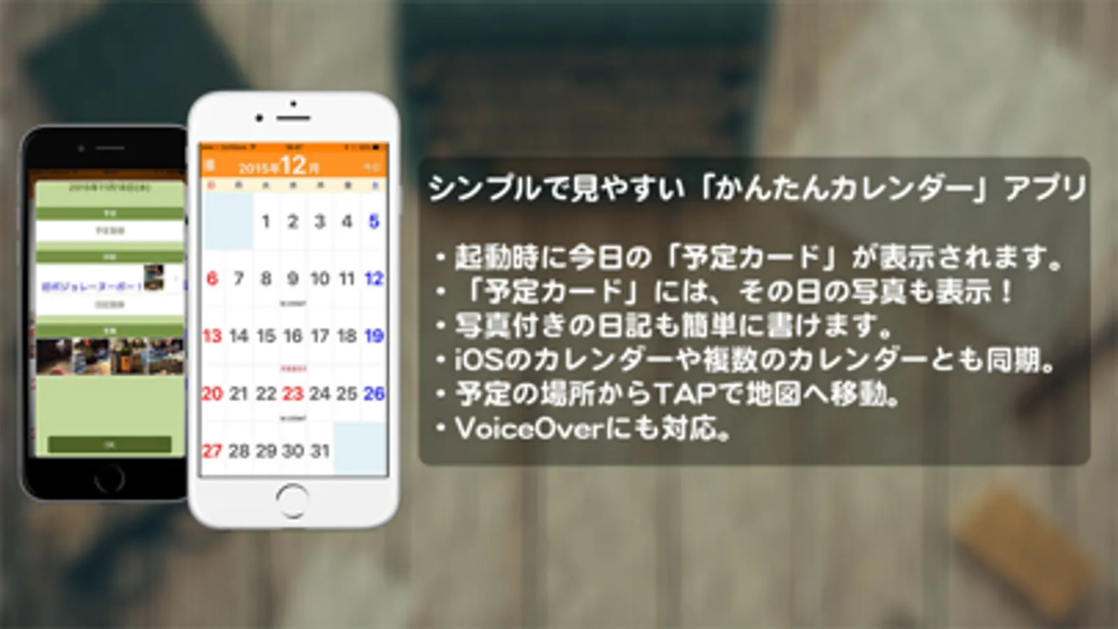 簡単に「一日の予定」の確認と「写真付き日記」を表示できるシンプルなカレンダーアプリ!