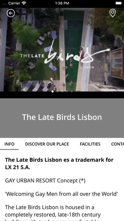 This application allows you to have access to essential information of The Late Birds Lisbon, with contacts, services and photos. Delight with the images of our comfortable rooms and the pool! You will also have the opportunity to book your stay at Late Birds Lisbon through your phone.