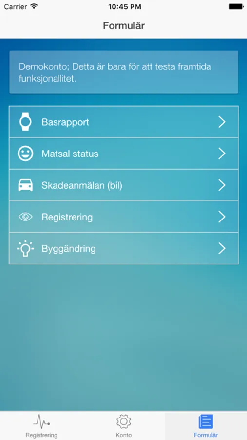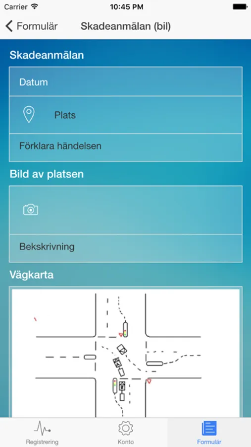 Formuläret gör det möjligt för användare att få en överblick av färdiga formulär i samband med sitt arbete. Användaren fyller ut den form som krävs och skicka det direkt från appen.