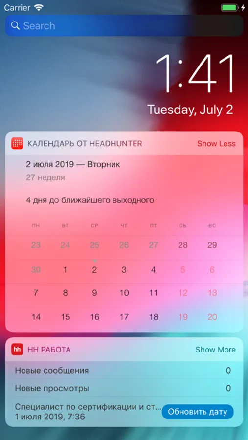Для этого необходимо всего лишь перейти в «Центр уведомлений», выбрать раздел «Сегодня», а затем пункт меню «Изменить». Добавить виджет «Производственного календаря hh» можно, просто нажав на расположенный рядом с ним плюсик.