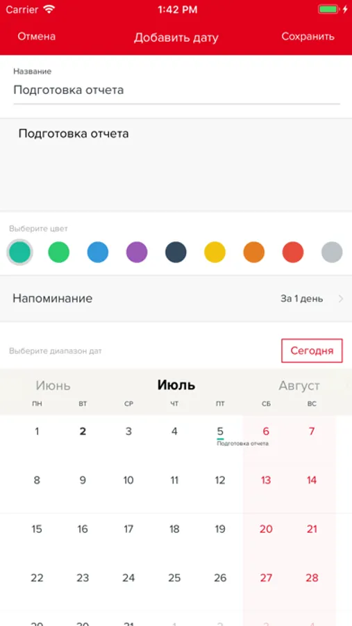Планируйте ваши события и следите за ними одним касанием пальца.