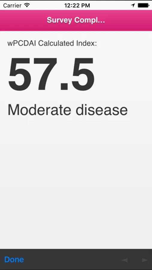 The app allows clinicians and members of the public to quickly calculate the disease activity index by answering 8 questions. The app does not store any previous calculations or patient specific information.
