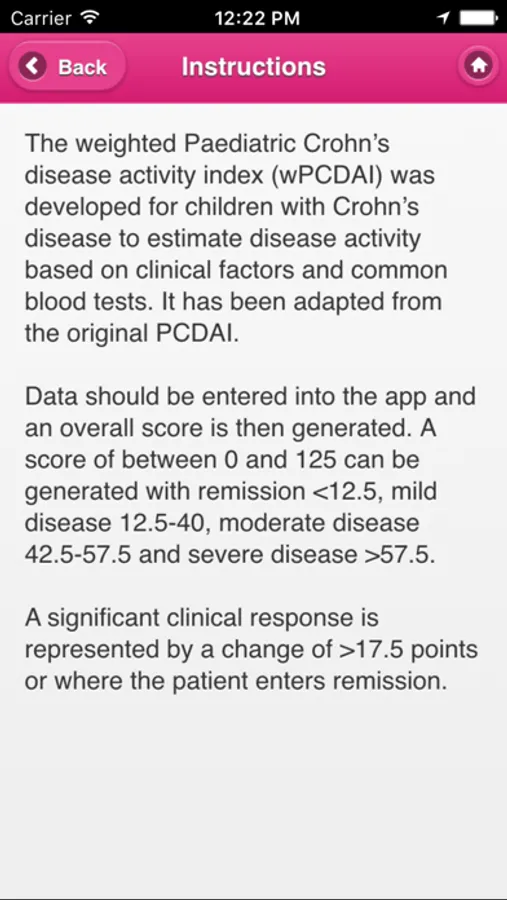 The weighted Paediatric Crohn’s disease activity index (wPCDAI) was developed for children with Crohn’s disease to estimate disease activity based on clinical factors and common blood tests. It has been adapted from the original PCDAI.