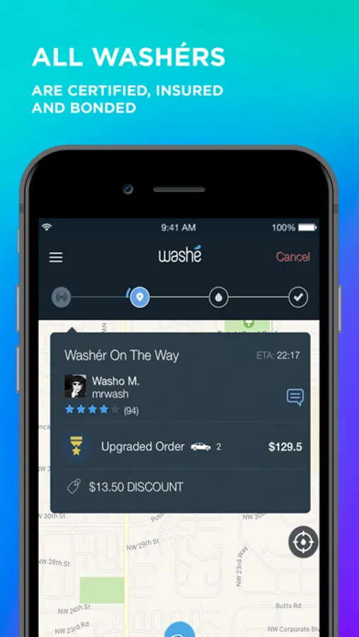 Track your Washer in real-time. Know your detailer’s ETA, GPS location and job status.