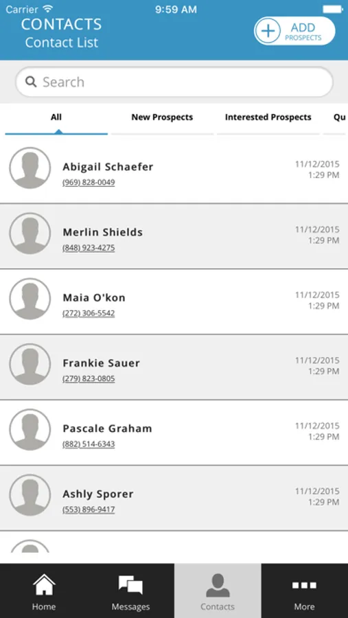 • Send pre-built messages, landing pages and media to prospects via text or email